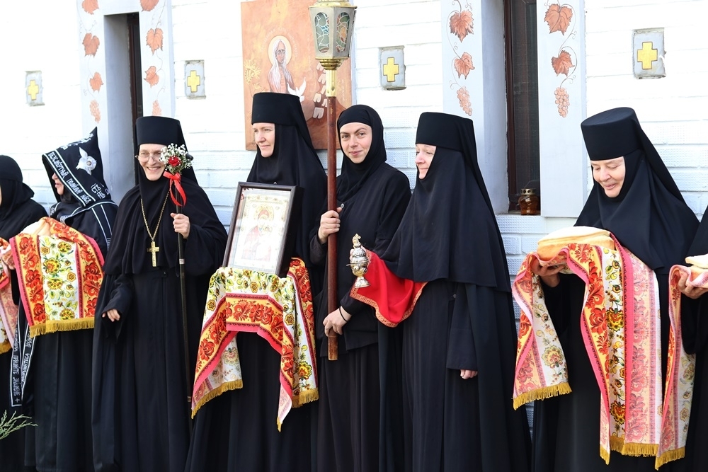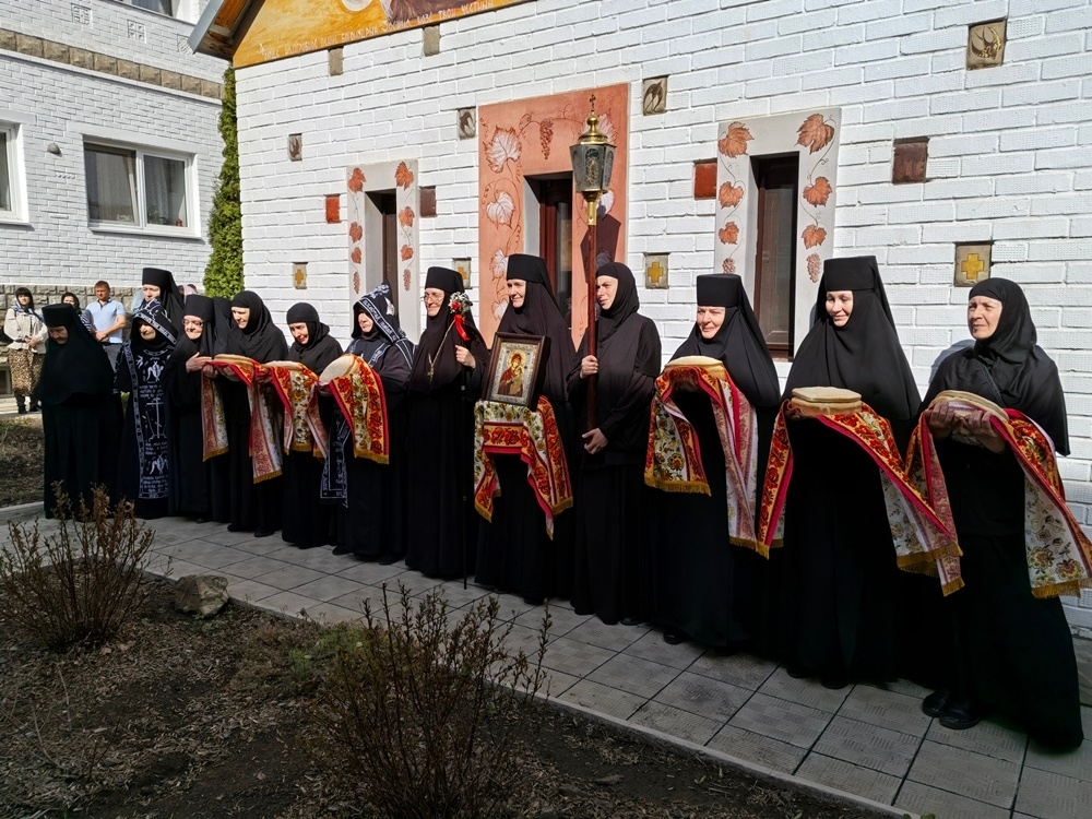 После заамвонной молитвы состоялся крестный ход по территории монастыря с чтением пасхальных евангельских зачал, после чего игумения Ксения тепло поприветствовала епископа Игнатия и дорогих гостей обители и вручила им, а также благодетелю монастыря Олегу Кривко пасхальные подарки. Матушка Ксения поблагодарила епископа Игнатия за постоянное попечение об Иверском монастыре.