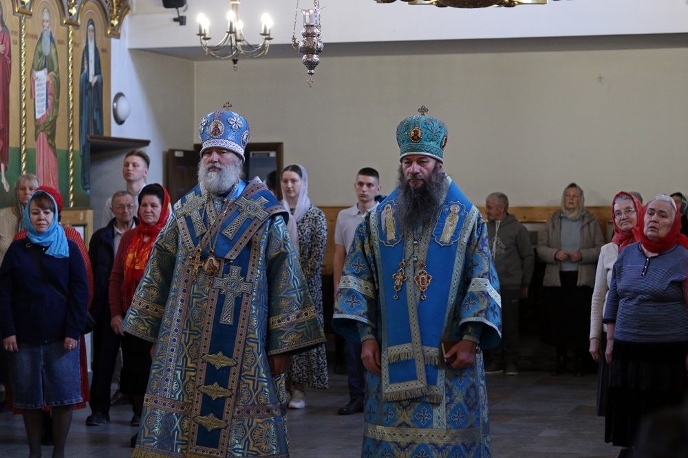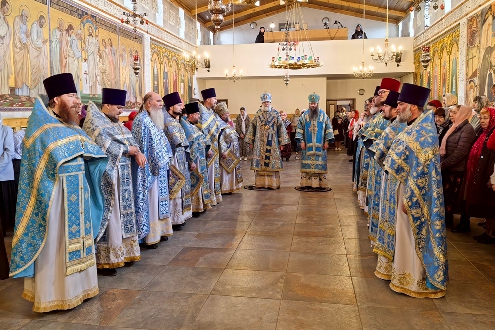 В соборном храме обители архипастыри возглавили Божественную литургию в сослужении двадцати священников Орской епархии и секретаря Актюбинской епархии священника Бориса Фатеева. За богослужением молились игумения монастыря Ксения (Пашкова), сестры обители, многочисленные паломники из храмов Орска, Новотроицка и Гая.