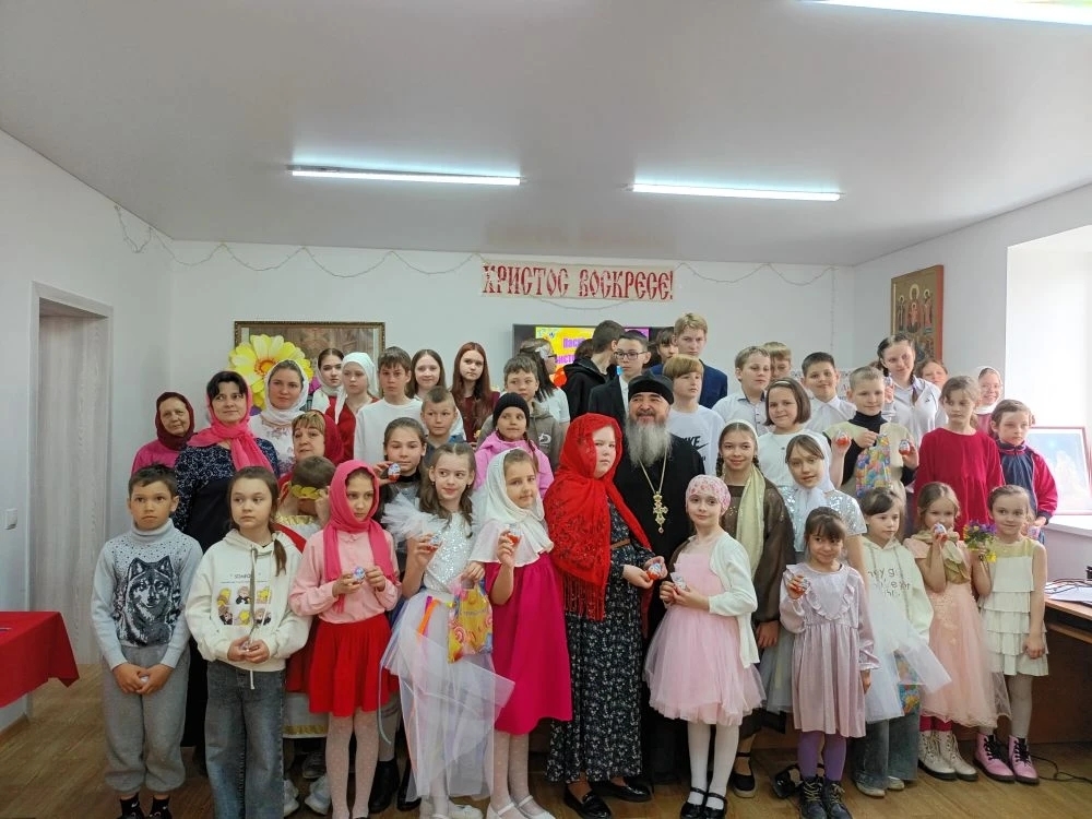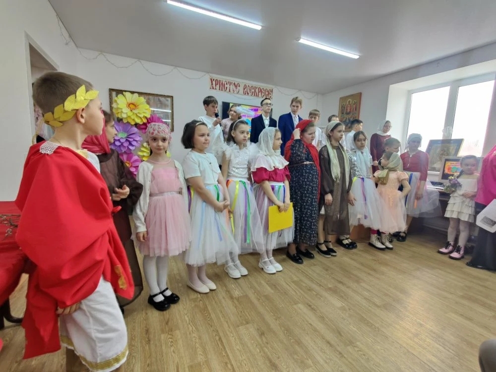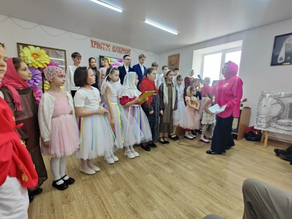 КУВАНДЫК. 12 апреля 2026 г. В светлое Христово Воскресение воспитанники воскресной школы подготовили прекрасное выступление для настоятеля храма, клира, родителей и прихожан.