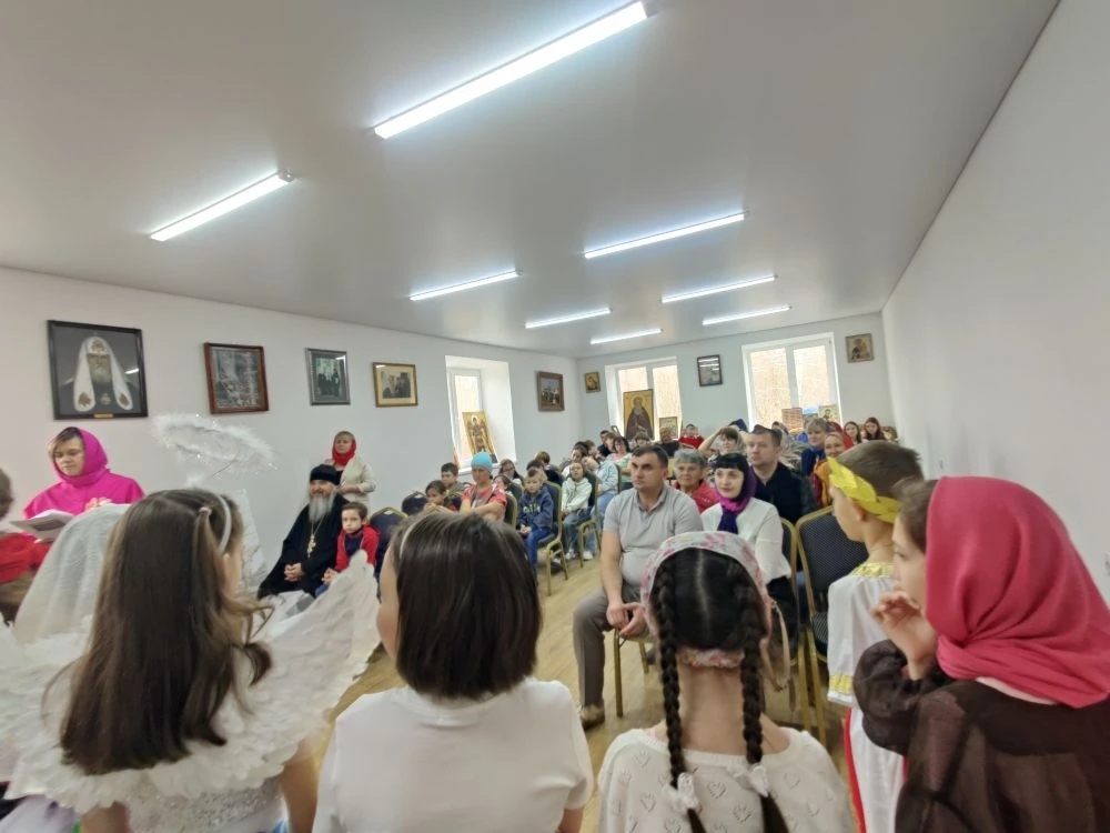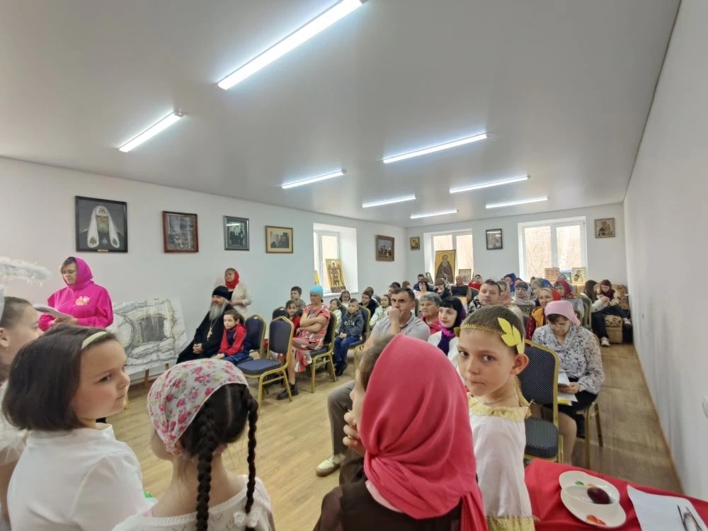 Актовый зал был полон. Дети пели пасхальные песнопения, славили воскресшего Христа, рассказывая стихи и историю тех далеких времен. В сценке представили приход Марии Магдалины к императору Тиберию, у которого на глазах произошло чудо: белое яйцо стало красным. Родители подготовили красочные костюмы, украсили зал яркими цветами. Ребята из социального центра «Аленушка» и другие дети, пришедшие на праздник, дружно отвечали на вопросы викторины. Украшением праздника также стало исполненный девочками в весенних костюмах танец «Пасхальная весна».