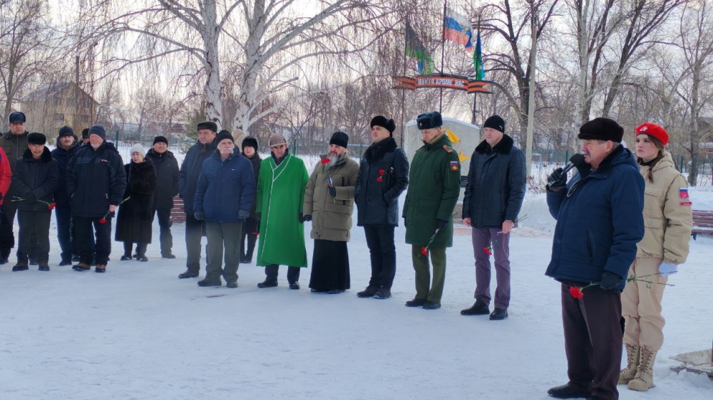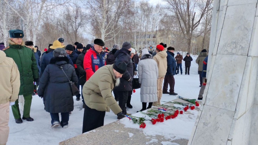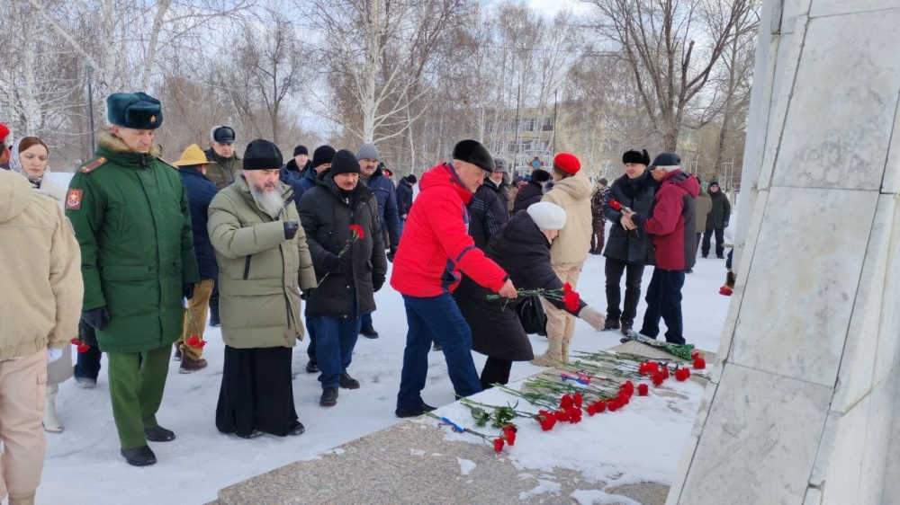 КУВАНДЫК. 15 февраля 2026 г. Благочинный Кувандыкского округа протоиерей Симеон Антипов принял участие в торжественном митинге, состоявшемся в парке п. Криолит.